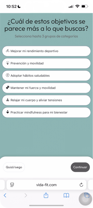 Postura, fuerza, movilidad o bienestar. Elige lo que quieras mejorar hoy.